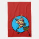 Funny Graphic Ninja pizza illustration red vertical kitchen dish towel. Background colour can be customized.