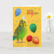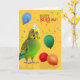 Funny Green and Yellow Budgie Parakeet Birthday Card