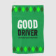This funny "Good Driver" (and, as a sidebar, in fine print, "not too shabby behind the wheel, either") typography golf towel with argyle borders is the perfect gift idea for any golfer who really knows how to shine at their long game! It is not a reference to your competence behind the wheel (of a car or a golf cart), but take it both ways if you wish!