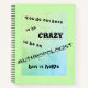 This notebook has the words "you do not have to be crazy to be an anthropologist but it helps" in creative fancy black characters, floating on a weird, slightly crazy green, aqua and light blue background with a delicate green frame. It may or may not suggest the idea that while you do not HAVE to be crazy, a bit of madness is still considered a great talent in anthropology... Of course, since this is fully customizable, you can just change the word "anthropologist" into whatever profession or hobby your madness is helping you with!