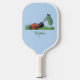 Funny green frog mowing lawn cartoon pickleball paddle