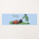 Funny green frog mowing lawn cartoon yoga mat