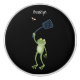 This funny green frog is catching lunch with a flyswatter. Drawn in silly cartoon illustration style.