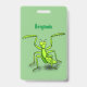Funny green praying mantis cartoon illustration badge