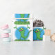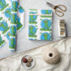 Funny green smiling animated iguana lizard wrapping paper