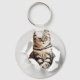 Funny Grey Cat Popping thru Torn Paper Illusion Keychain