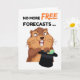 Funny Groundhog Day, paper greeting card with a demanding and angry groundhog holding a top hat with money in it. No more FREE forecasts … written on the cover. Inside message … until you pay! Otherwise SPRING may never come your way. Happy Grouchy Groundhog Day! Art, image, and verse copyright © Shoaff Ballanger Studios, 2026.