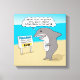 This funny wrapped canvas colour print features a shark who has a guilt complex about going back in the water after he sees a public beach sign notifying swimmers that the Shark Danger Level is currently LOW. © 2015 Chuck Ingwersen