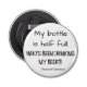 Funny and quirky slogan bottle opener with text "My glass is half full. Who's been drinking my beer?!" quoted paranoid optimist.