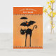 Creative Halloween card featuring funny black cat and an acrobat bat with an umbrella. Add his or her name to personalize.
