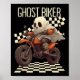 Funny Halloween Ghost Biker On Motorcycle Poster