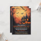 L'invitation de la fête d'Halloween présente une scène éffrayante avec une maison hantée située sur le côté droit de la carte. La maison hantée est sombre et délabrée, avec des fenêtres épouvantables et quelques lanternes Jack-o' avec des grins espiègles placés autour de ses marches. Sur le côté gauche de la carte, quelques chauves-souris tournent dans le ciel éclairé par la lune, ajoutant à l'ambiance déplaisante. Le texte est placé en bas du côté avant de la carte. Tout le texte est entièrement personnalisable, vous permettant d'ajuster la date, l'heure et l'emplacement de la partie, ainsi que la police et les couleurs pour correspondre à votre style. L'arrière de l'invitation reflète le design de l'avant, avec la maison hantée, Jack-o-lanterns, et chauves-souris subtilement fondus dans l'arrière - plan pour permettre au texte de se démarquer. La section RSVP se trouve en bas, où vous pouvez inclure des détails RSVP personnalisables, tels que les coordonnées et l'échéance RSVP. Au-dessus de la section RSVP, il y a des lignes supplémentaires pour des instructions personnalisées ou d'autres détails de fête, comme "N'oubliez pas vos chaussures de danse !" ou "Attention aux surprises éffrayantes !" Cette invitation combine parfaitement une atmosphère éffrayante et ludique, donnant le ton d'une fête d'Halloween inoubliable.