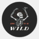 Funny Halloween Pun Skeleton Bone To Be Wild Classic Round Sticker