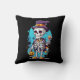 Funny Halloween Skeleton wearing Top Hat Throw Pillow