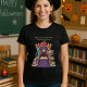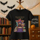 Wear your classroom crown this Halloween! The Queen of the Classroom — Hauntingly Good! tee features a whimsical witch-teacher throne made of books, pencils, and globes — ideal for elementary teachers who want festive, classroom-safe style. Add a name for a personal touch.