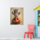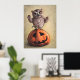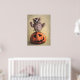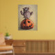 Ironical Halloween Owl drawing. A very scary Vampire Owl is sitting on a pumpkin.