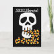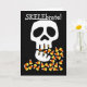 SKELEbrate Halloween with this funny looking skull chomping down on some sugary candy corn. White skull, candy corn, and white lettering on a black background. Customize the interior message as you like before checkout. Art, image, and verse copyright © Shoaff Ballanger Studios, 2021.