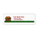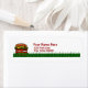 A graphic design of a funny hamburger with olive eyes by artist/designer Charmaine Paulson on a picnic invitation return address label. The label has text templates for your personalization. ©2012charmainepaulson