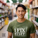 Show off your fixer skills with this hilarious "This Is What I Do I Fix Stuff & I Know Things" t-shirt! Featuring bold white text and a classic screwdriver graphic on a rugged olive green background, this funny handyman tee is perfect for mechanics, DIY dads, garage warriors, carpenters, engineers, or anyone who fixes everything (and knows a thing or two).