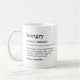 Create your own one-of-a-kind personalized coffee mug with the definition of hangry. Modern dictionary style hangry definition with custom name, black typography and clean and simple design. A personalized gift idea for that one person you always carry a granola bar for. A unique and funny gift for Birthdays or Christmas, really any occasion. Enjoy the look on the face when your hangry friend unwraps it.