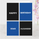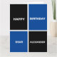 Funny black and blue square pattern and personalizable text.