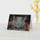 This grey cat is looking at you in a funny way to wish a happy birthday. Take this funny birthday card for cat-lovers to make them laugh and have fun on their birthday.