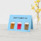 This humourous greeting card says Happy Father's Day and has three cartoon glasses of fizzy drinks. One has a moustache, and the middle one has a goatee beard and dark glasses, shades.