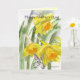 A cartoon bunny rabbit cutely peaking out from some bright yellow watercolor daffodils- the perfect combo card to wish mom a Happy Mothers Day.