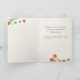 A festive greeting card wishing your loved one Happy Thanksgiving, with a decoration of autumn fall leaves, acorns and an orange pumpkin. Inside funny humourous text is editable and reads, "Hoping you and your family aren't put to sleep by the turkey this year. Enjoy Your Thanksgiving!"
