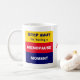 This is a funny custom HAVING A MENOPAUSE MOMENT monogram coffee mug, designed to shed some humour on an important life season. The wording reads STEP AWAY, I'M HAVING A MENOPAUSE MOMENT in blue and white typography, set against rectangles of yellow, red and blue. If you or someone you know are adjusting to hysterectomy and getting old, this Menopause Mug could be a way to inject some humour when the hot flashes (hot flushes) arrive in waves. ALL TEXT IS CUSTOMIZABLE, so you can add your name and create your own text and personalize for that special person (including yourself!). The design is repeated on the back, and in the middle there is a CUSTOMIZABLE MONOGRAM which you can change for your initials. This menopausal monogram mug would make a great gift for birthdays, Christmas, Mother's Day or 'just because'.