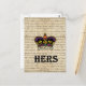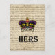 Fun funny "hers" text with a purple crown illustration on a vintage paper handwritten background.
