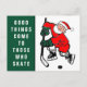 Funny Christmas holiday greeting cards featuring Santa hockey player cartoon and creative quote: Good things come to those who skate.