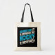 Funny hockey themed tote bag with blue and white text on a black background reads Education is Important But Hockey is Importanter!