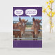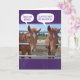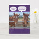 Photo of two horses hanging out. One says to the other, "Today's my birthday." The other horse says, "Glad to see you're not dog food yet". You thought getting old is tough, try being a horse. The inside says, "Be happy you're not a horse. Happy buckin' Birthday!" Funny card for horse lovers.