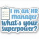 I’m an HR manager, what’s your superpower? Funny human resources department gift for an HR rep in cute blue font.
