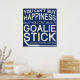 Another original Game Face Gear design! Available on wrapped canvas prints and posters. These make great gifts for your sports mad family and friends, even better, get yourself one! Perfect for offices, living rooms, man caves, dens, lady caves etc! Funny hockey netminder design, with the text: YOU CAN'T BUY HAPPINESS, BUT YOU CAN BUY A GOALIE STICK AND THAT'S KINDA THE SAME THING. Big bold design great for t-shirts and hoodies!