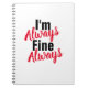 Funny "I'm Always Fine Always" Gratitude Notebook. Add your favourite quote. Enjoy!