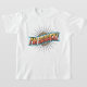 Funny I'M BAAACK! Back To School T-shirt for kids. The design shows the words I'M BAAACK! in a comic strip style inside a wavy banner, with a sun burst in the background. This is a fun Back To School T-shirt to wear on your kid's return, whether he or she is moving up a year or having to repeat a year. The teachers are bound to want to welcome your child back!