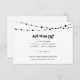 Funny RSVP wording for a fun wedding! Minimalist backdrop with elegant rustic string lights.