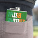 Funny humourous Irish whiskey makes me frisky drinking text and green lucky shamrock clovers for St Pats day Visit the PADDY_O_DOORS STORE for matching products.