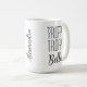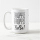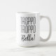 Funny Italian Saying mug with the words "Troppo Troppo Bella", which means "Too, Too Beautiful" Simple black san serif and script on a white mug. Personalization is easy. A pretty script is vertically placed on the front centre of the mug for entering your name. Great gift that will make your Italian friends smile!