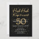 Make their milestone unforgettable with this chic 50th surprise birthday invitation, crafted to add charm and secrecy to the celebration. The headline reads “Hush Hush, Keep it a secret” in an elegant gold script, paired with classic serif fonts for easy-to-read details. A bold “50” anchors the design in the background, with the guest of honour’s name layered over it, all set against a black canvas and confetti accents in a gold colour for a festive finish. Every element—from name and date to address and RSVP—can be easily personalized, An ideal choice for family or corporate planners who want a refined yet playful invitation.