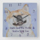 This happy slogan on this customizable clock "Smile And The World Smiles With you"" says it all about this funny smiling akita picture because a Japanese akita’s smile spreads happiness to everyone. This cute Japanese akita is my sweet girl named Asia, one day I saw her laying on her back with this wonderful happy akita smile on her face and I photographed her, then from the photograph and painted her portrait in water-colour. The fun phrase is printed just below the happy akita dog face. This is a customizable clock, you can personalize it with your own text For everyone who loves this funny dog picture but aren’t acquainted with the Japanese akita breed here’s an "in brief" description of this unique breed of dog-: They’re large dogs, big gentle giants who require lots of consistent training and anyone who wants to be "owned" by an akita needs to study the breed thoroughly. The best place to go first is an akita rescue website where you’ll find lots of information on these amazing dogs and hopefully you'll also be able to givr a Japanese akita s forever home and find your friend and companion for life, my precious akita girl comes from Akita Rescue and Welfare U.K. and I think her funny akita painting looks great on this original clock. So, if you want to see an akita smile take a trip to akita rescue . If you're interested in commissioning a pet portrait for yourself or as a special gift for someone, please don't hesitate to email me for further details. I look forward to "chatting" to you:)
