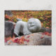 Funny Japanese monk statue with autumn leaves Postcard
