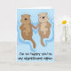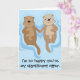 Carte d'anniversaire amusante et romantique avec des loutres flottant et tenant la main. Customisez le texte à l'avant ou à l'intérieur de votre propre message.
