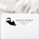 Cette typographie personnalisable et script retour adresse design d'étiquette caractéristiques mignonne, drôle sautant acrobat noir chatte silhouette. Vous pouvez facilement modifier la couleur, le nom et l'adresse de l'arrière - plan, le style de police, la couleur et la taille à l'aide des boutons Zazzle Edit Design et Personnaliser.