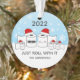 A funny and festive holiday ornament design featuring 2 adult and 3 child toilet paper rolls wearing Santa hats saying "Just Roll With It." A light-hearted laugh at the toilet paper shortage during COVID quarantine and events. Personalize the text and add your names to the ornament.