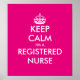 Neon pink Keep calm i'm a registered nurse posters. Create your own funny Keep calm and carry on parody for rn nurse, nursing school graduate, hospital, cargiver , male nurse, lpn etc. Customize background colours and text. Vintage typography template. Nursing humour / joke.