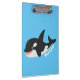 This cute design features a happy smiling killer whale blowing bubbles on a blue background for fun!