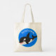 This cute design features a happy smiling killer whale blowing bubbles on a blue background for fun!
